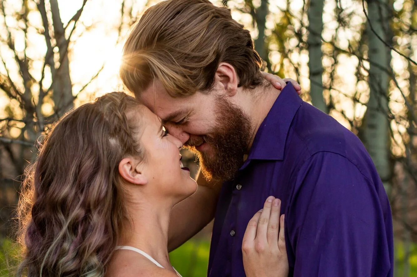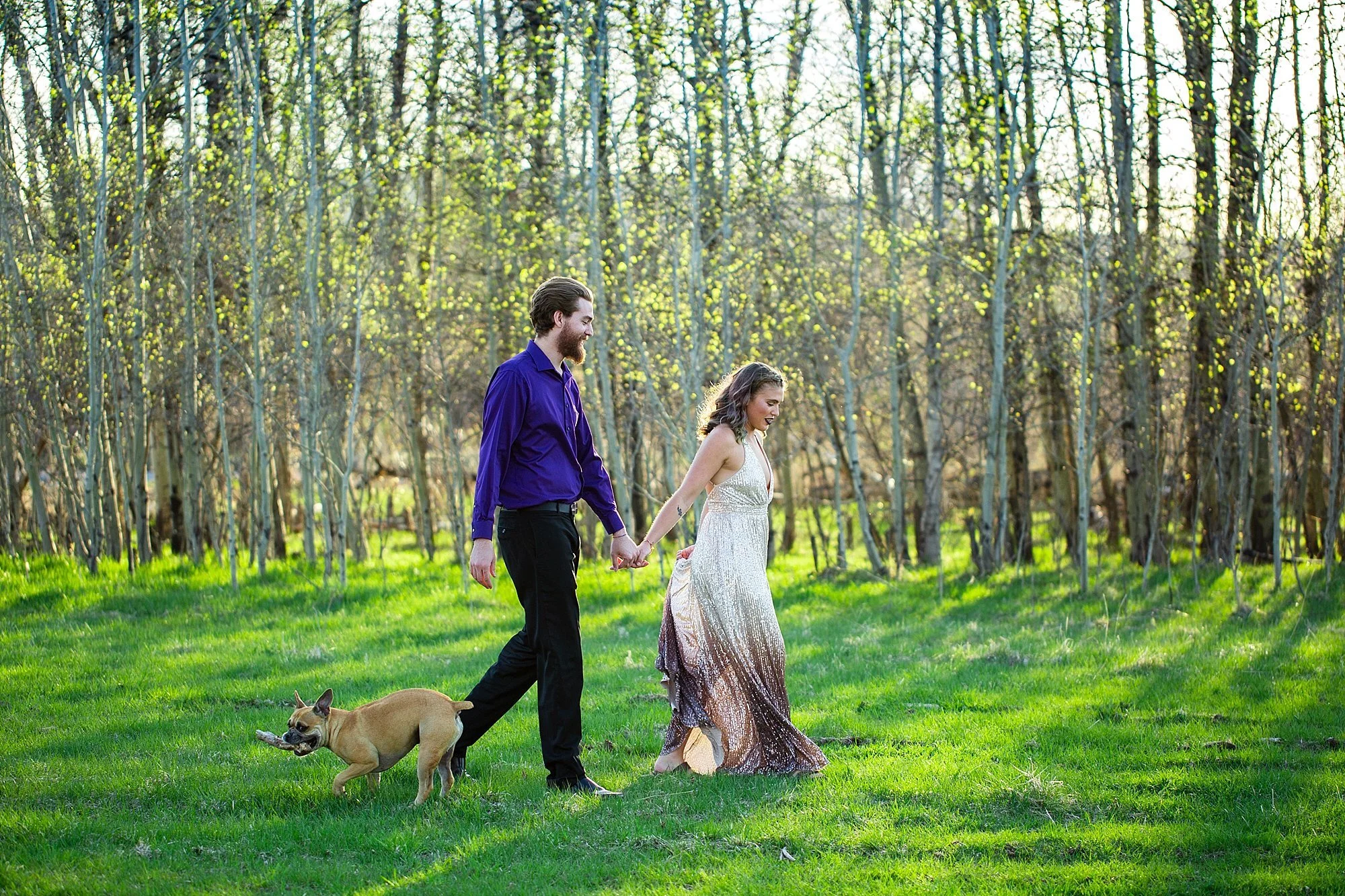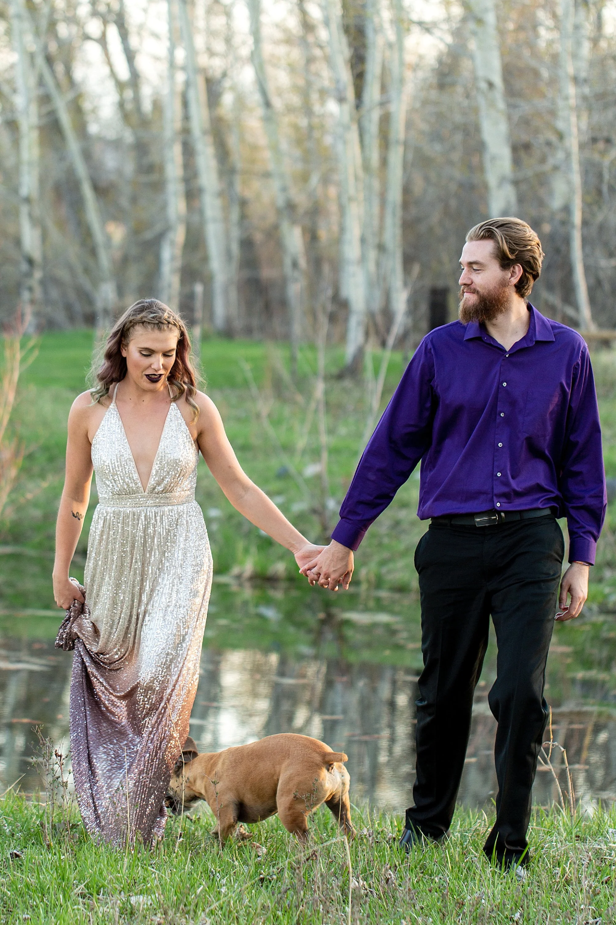 Emily and Gavin chose the beautiful ranch she grew up on along the Gallatin River as the place to celebrate their engagement. It offered the river side, open grassland, beautiful aspen woods just coming into leaves, and a fun little pond. Montana has so many locations that are wonderful for a romantic engagement session. Whether riverside like Emily and Gavin, mountain top, or out on the sage plateaus you have an amazing array of options - take advantage of that!
